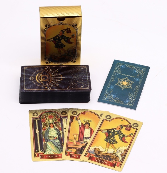 Karty Tarota z Niebieską i Złotą Folią i Przewodnikiem Wszystkowidzące oko