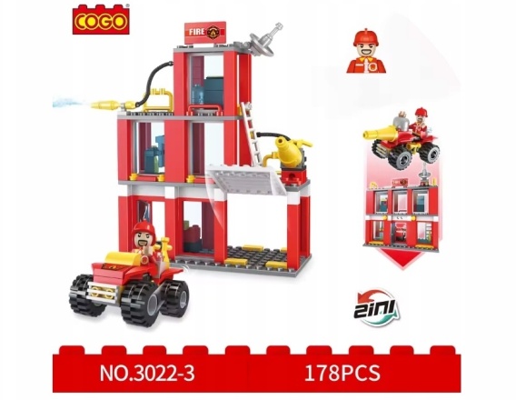 Klocki konstrukcyjne Cogo 2w1 Straż pożarna - Remiza
