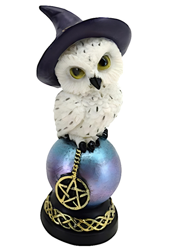 Mądra stara magiczna sowa na opalizującej kuli 12,5cm