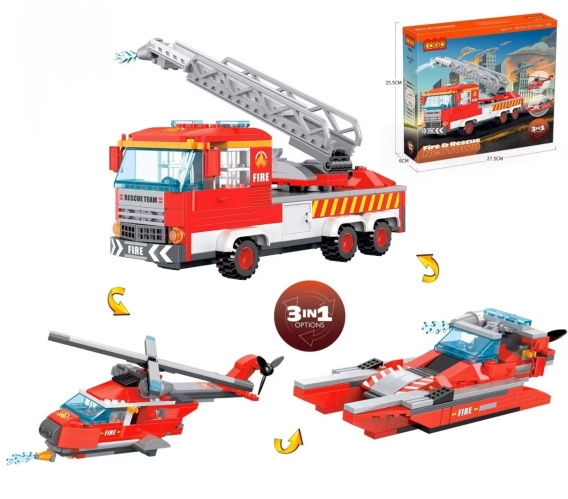 Klocki konstrukcyjne COGO Zestaw 3w1 Wóz Strażacki Helikopter Łódź Staż Pożarna