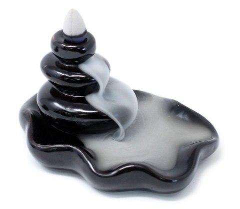 Kominki zapachowe z przepływem zwrotnym zostały specjalnie zaprojektowane tak, aby dym z kadzidełka spływał kaskadą w dół do pojemniczka na dole kominka. Dym z kadzidełka, który niczym mgła otacza kominek i spływa niczym mistyczna rzeka po wyżłobieniach oraz rowkach kominka.