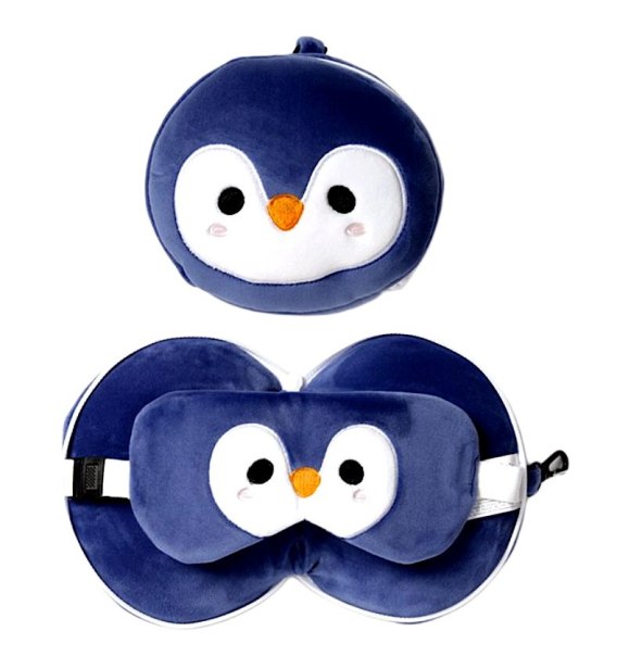 Pingwinek poduszka podróżna z maseczką na oczy - maskotka pingwin Miruś