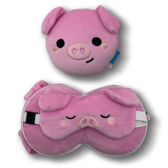 Świnka Oskar poduszka podróżna + maseczka maskotka